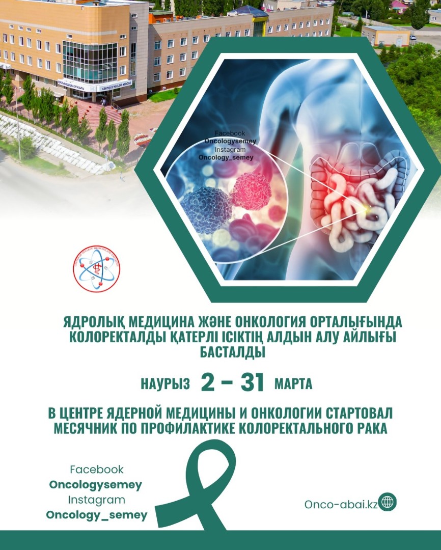 Центр ядерной медицины и онкологии орталығында 2–31 наурыз аралығында колоректалды қатерлі ісіктің алдын алу және ақпараттандыру айлығы өтуде. Осы уақыт ішінде ерте диагностиканың маңызы туралы ақпараттық материалдар жарияланады. Сондай-ақ Ашық есік күні өткізіледі деп жоспарлануда. Жаңалықтарымызды қадағалап, толық ақпараттан хабардар болыңыз.