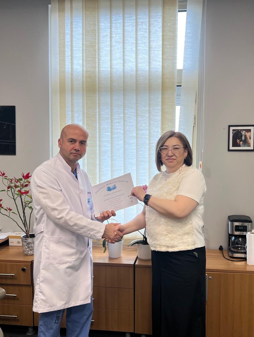 23-27 наурыз аралығында ЯМжОО мамандары Асем Чалдыбаева мен Маржан Джакупаева Турцияның алдыңғы қатарлы медициналық орталықтарының бірі Anadolu Sağlık Merkezi Hastanesi оқытудан өтті.