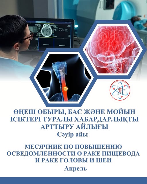 Сәуір айында Қазақстанда өңеш обыры мен бас және мойын ісіктері туралы хабардарлықты арттыруға арналған айлық өтеді. Онкологиялық аурулар ауыр дерттердің қатарына жатады және көп жағдайда кеш кезеңдерде анықталып жатады, сондықтан бұл шара халықтың ақпараттануы, аурудың алдын алу мен ерте анықтауда маңызды факторы болып табылады.